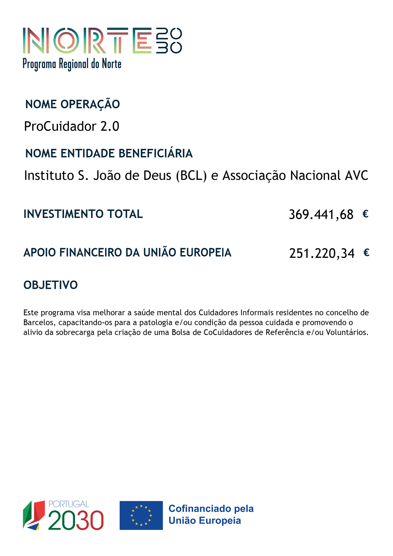 A Associação Nacional AVC e o Instituto São João de Deus (ISJD) – Barcelos são as Entidades Coordenadoras do ProCuidador 2.0 – Programa de Intervenção com Cuidadores Informais, residentes no concelho de Barcelos.